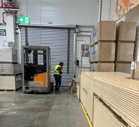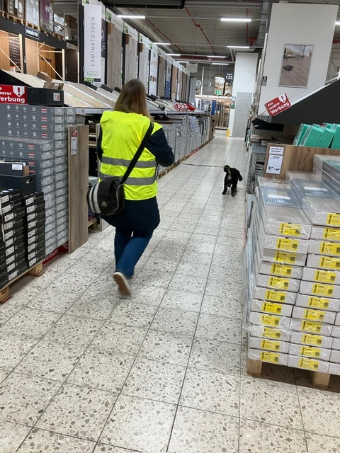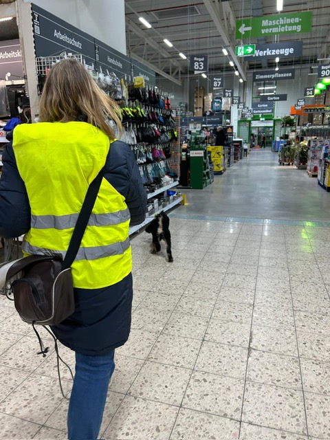 Für einige Hunde war es der allererste Indoor Trail im Globus Baumarkt in Rottenburg. Ganz schön aufregend, in den langen Gängen mit glattem Fußboden und vielen fremden Gerüchen nach der Versteckperson zu suchen. Vor allem, wenn sie hinter Türen, Paletten, Gabelstaplern, in Regalen oder Duschkabinen versteckt sind und auch noch Hundefutter auf Nasenhöhe ausliegt!